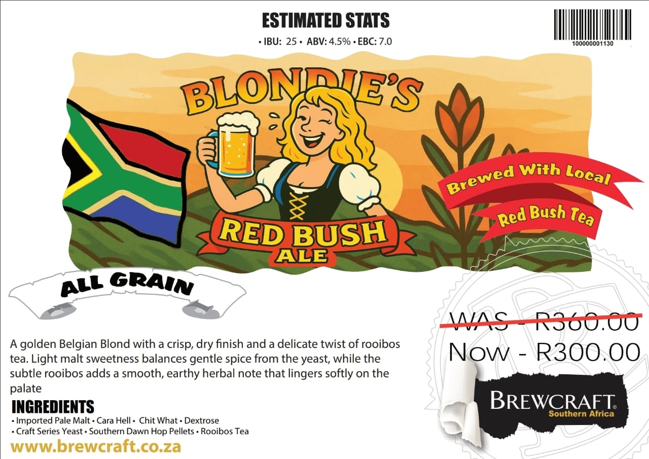 A golden Belgian Blond with a crisp, dry finish and a delicate twist of rooibos tea. Light malt sweetness balances gentle spice from the yeast, while the subtle rooibos adds a smooth, earthy herbal note that lingers softly on the palate.