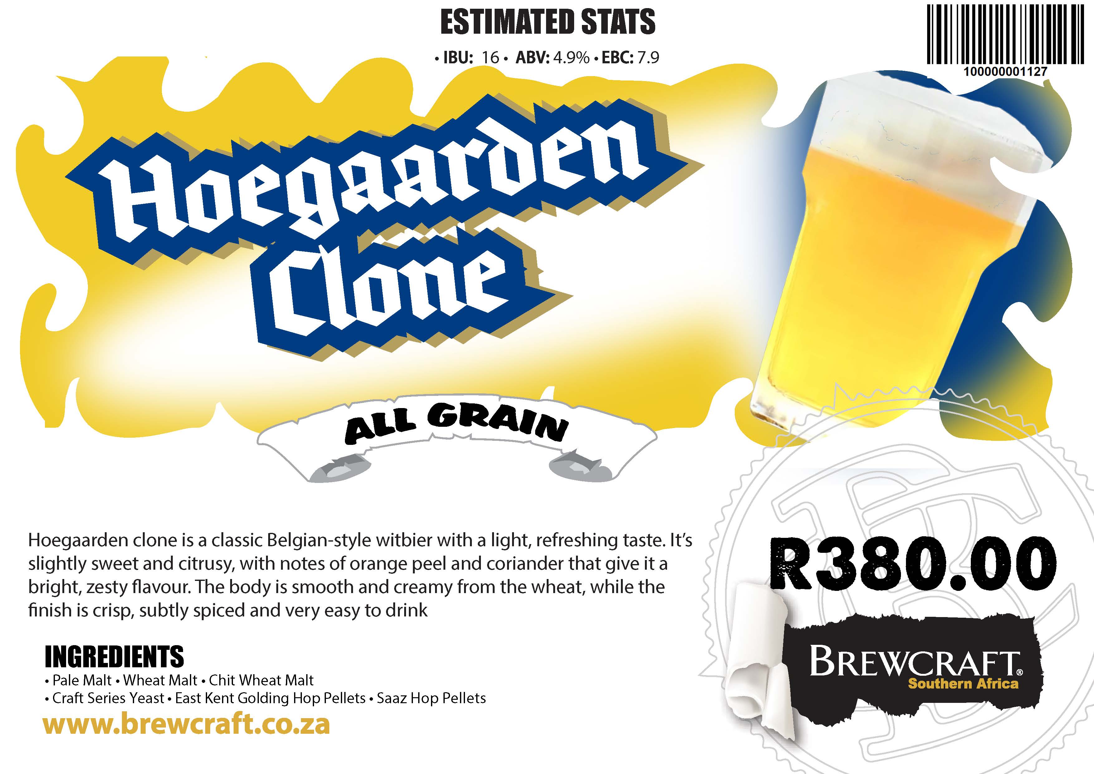 Hoegaarden clone is a classic Belgian-style witbier with a light, refreshing taste. It’s slightly sweet and citrusy, with notes of orange peel and coriander that give it a bright, zesty flavour. The body is smooth and creamy from the wheat, while the finish is crisp, subtly spiced and very easy to drink